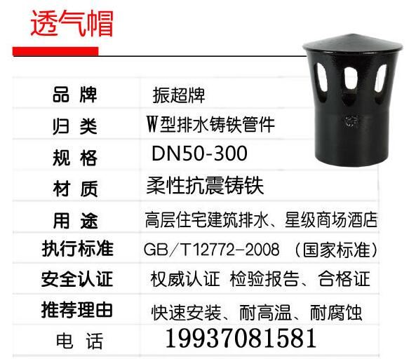 鑄鐵管下水管件 透氣帽廠家