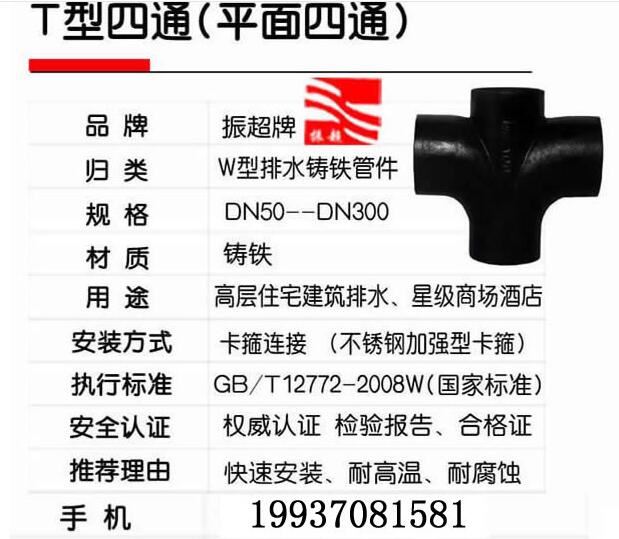 振超牌W型鑄鐵排水管件,鑄鐵,卡箍連接,快速安裝,耐高溫,耐腐蝕;用于高層住宅建筑排水、星際商場酒店。