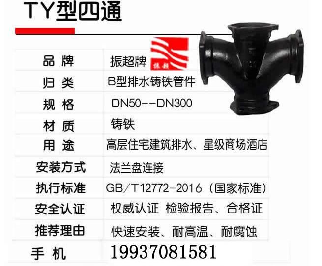 振超牌B型鑄鐵排水管件,鑄鐵,法蘭盤鏈接,快速安裝,耐高溫,耐腐蝕;用于高層住宅建筑排水、星際商場酒店。