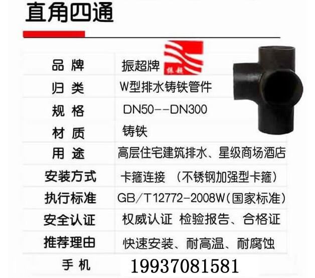 振超牌W型鑄鐵排水管件,鑄鐵,卡箍連接,快速安裝,耐高溫,耐腐蝕;用于高層住宅建筑排水、星際商場(chǎng)酒店。