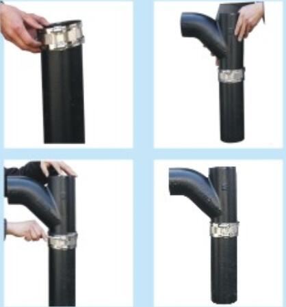 三、將橡膠器套入另一端接口上,再把卡箍套人橡膠圈上,使兩個(gè)接口平整對(duì)好。